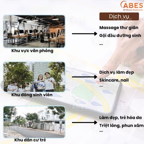 - Khu dân cư trẻ → những dịch vụ làm đẹp, trẻ hóa da: triệt lông, chăm sóc da nâng cao.