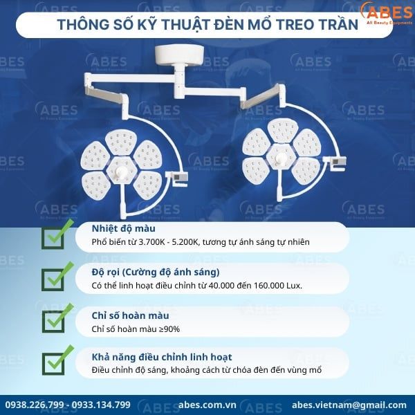 - Ánh sáng chuẩn y khoa: Giúp bác sĩ quan sát chi tiết vùng phẫu thuật, hạn chế bóng che.